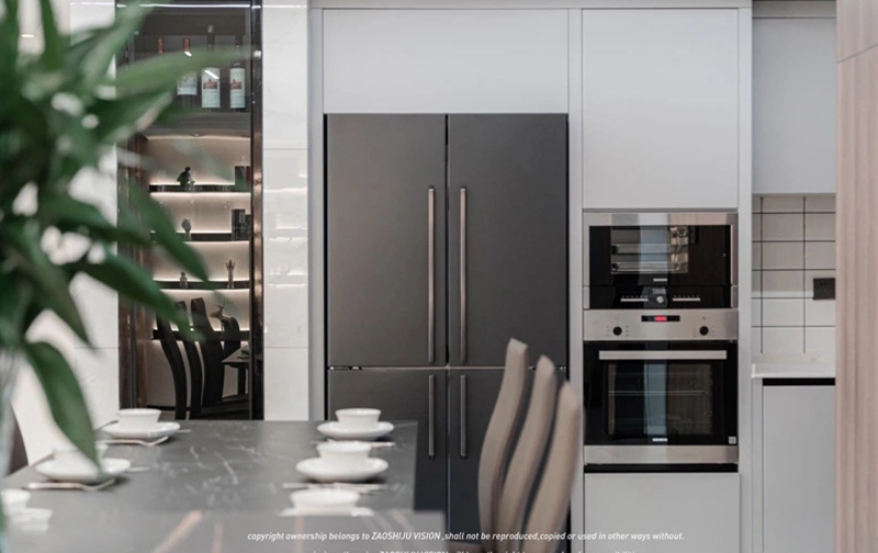 設計師巧用隔斷,區分出開放式廚房和餐廳,整體空間顯得更為通透。