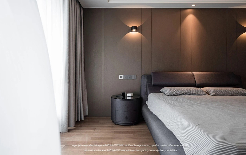 臥室舒適溫馨,遵循給主人優質睡眠質量的設計主旨,采用了溫柔冷靜的暖色。
