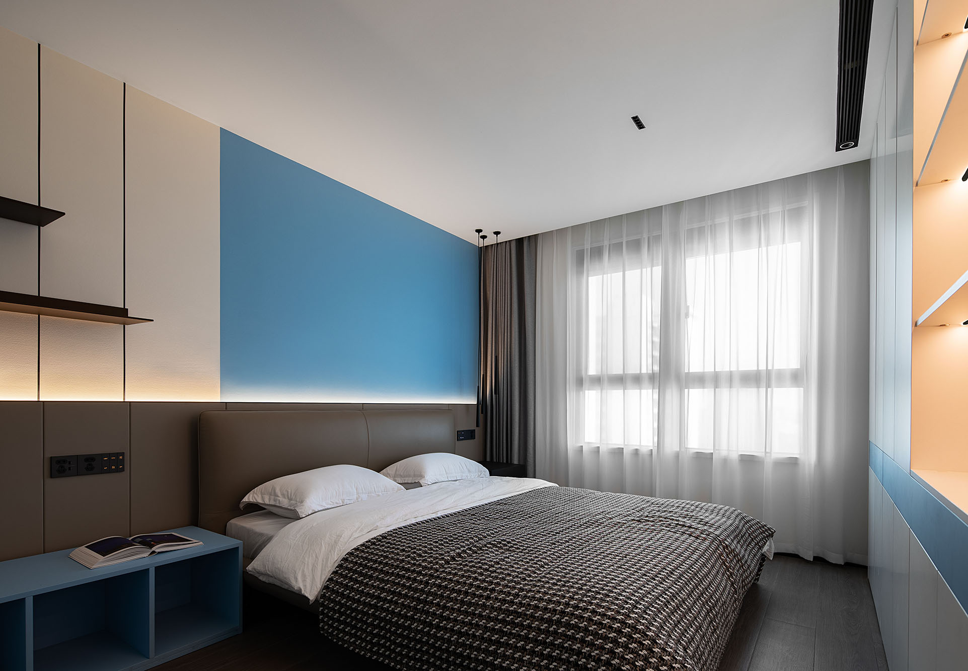 藍白相間的墻面給房間注入了一股清新空氣,