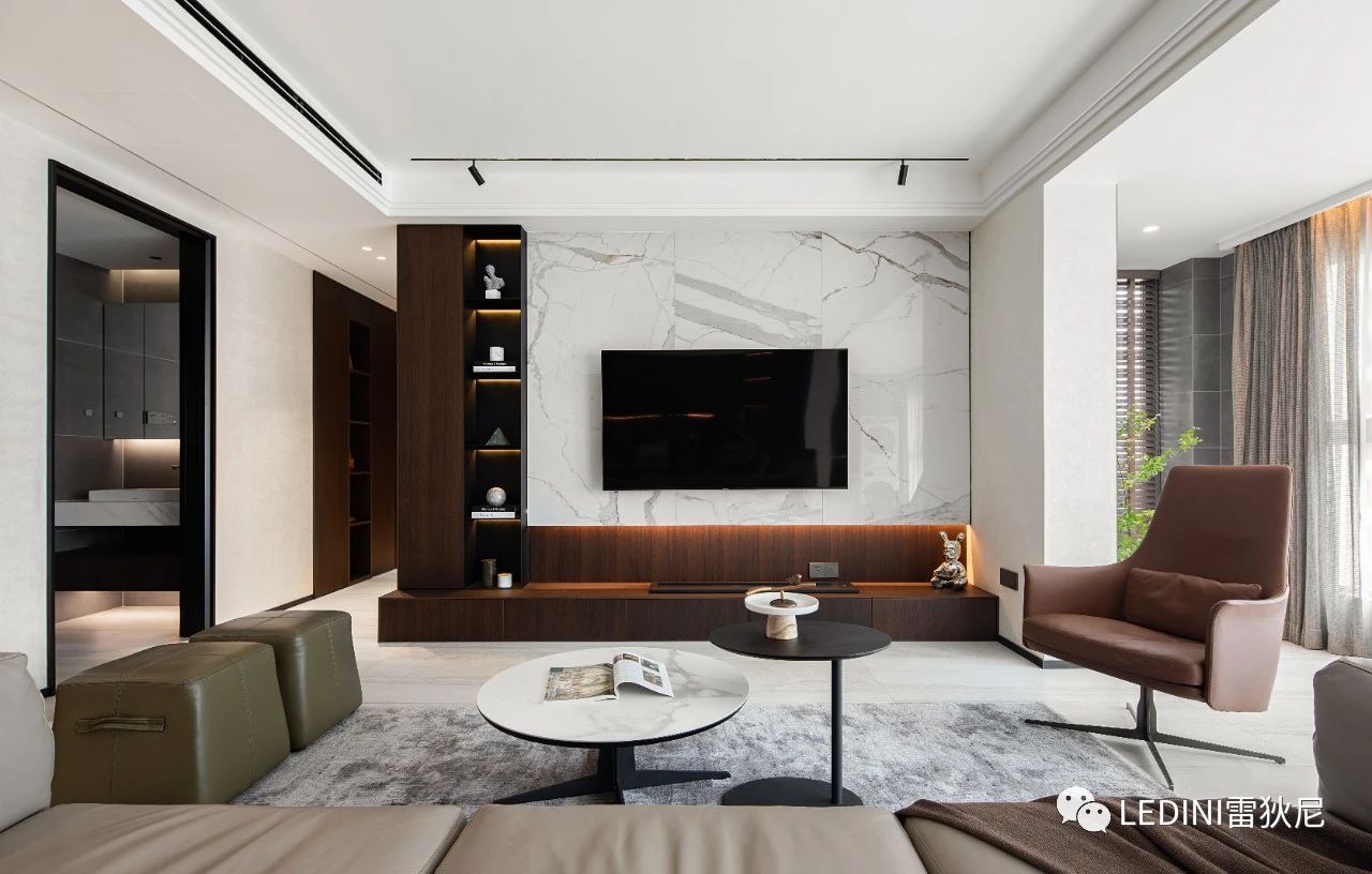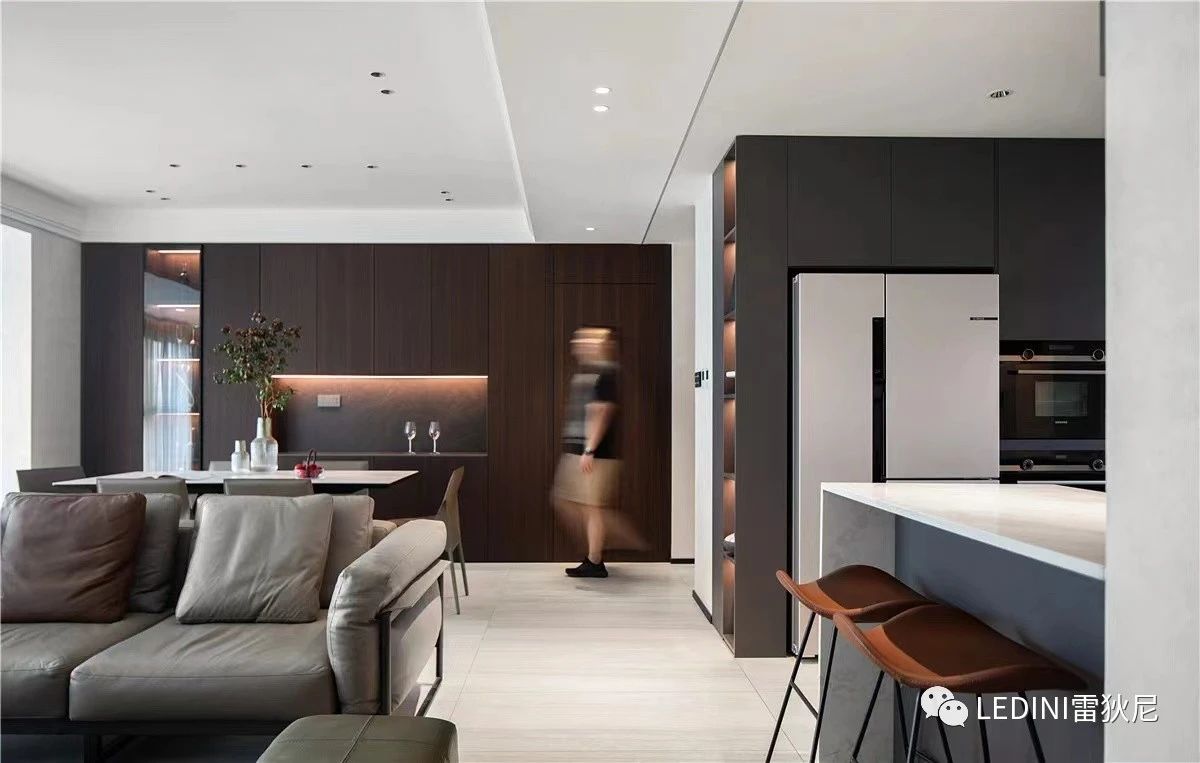 本案中,設計師選用了LEDINI進口煙熏橡木木皮為主要元素,