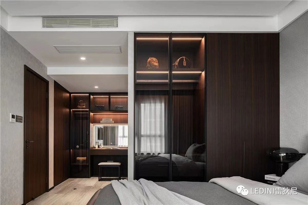 有序的層板燈營造臥室光源的多層感。