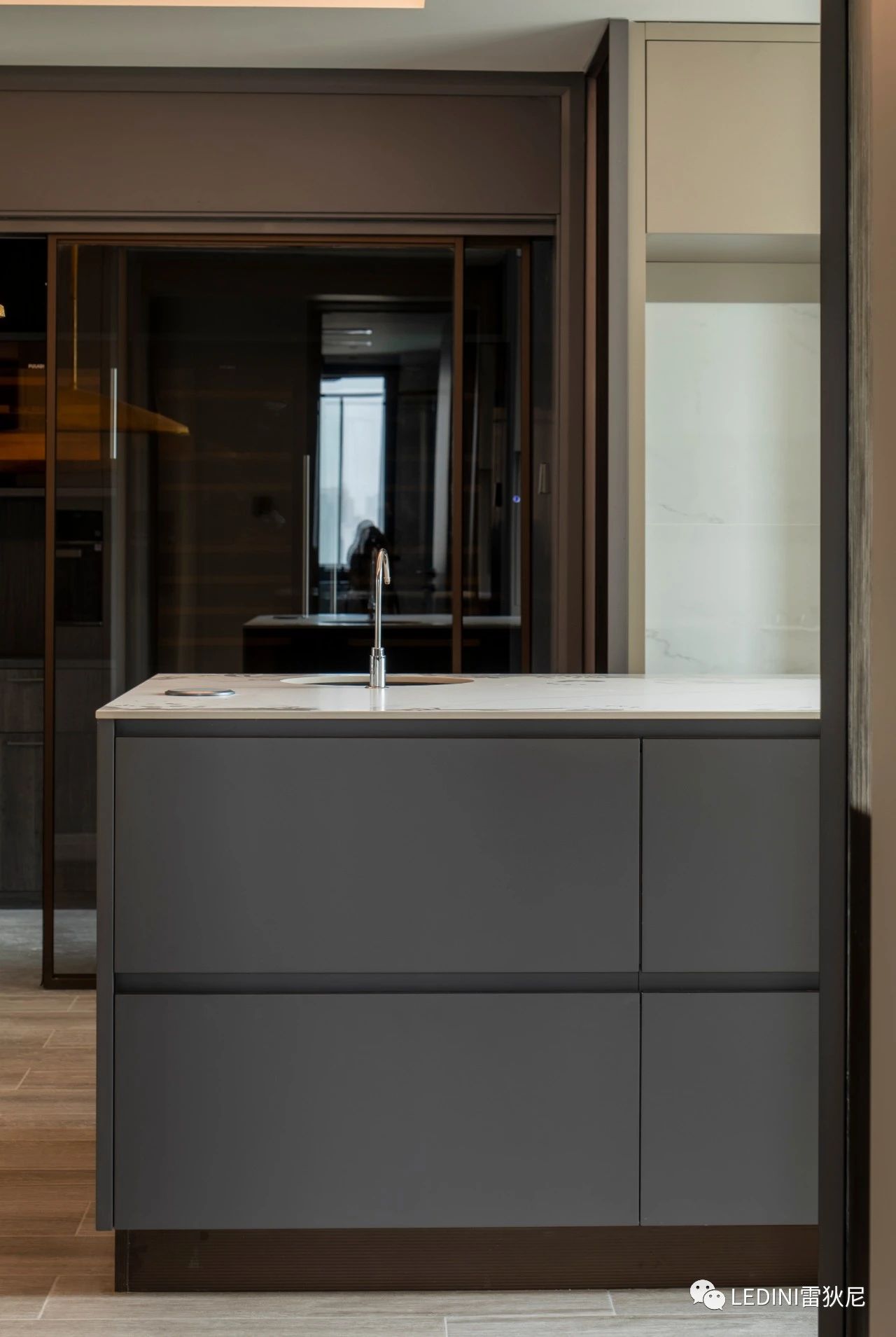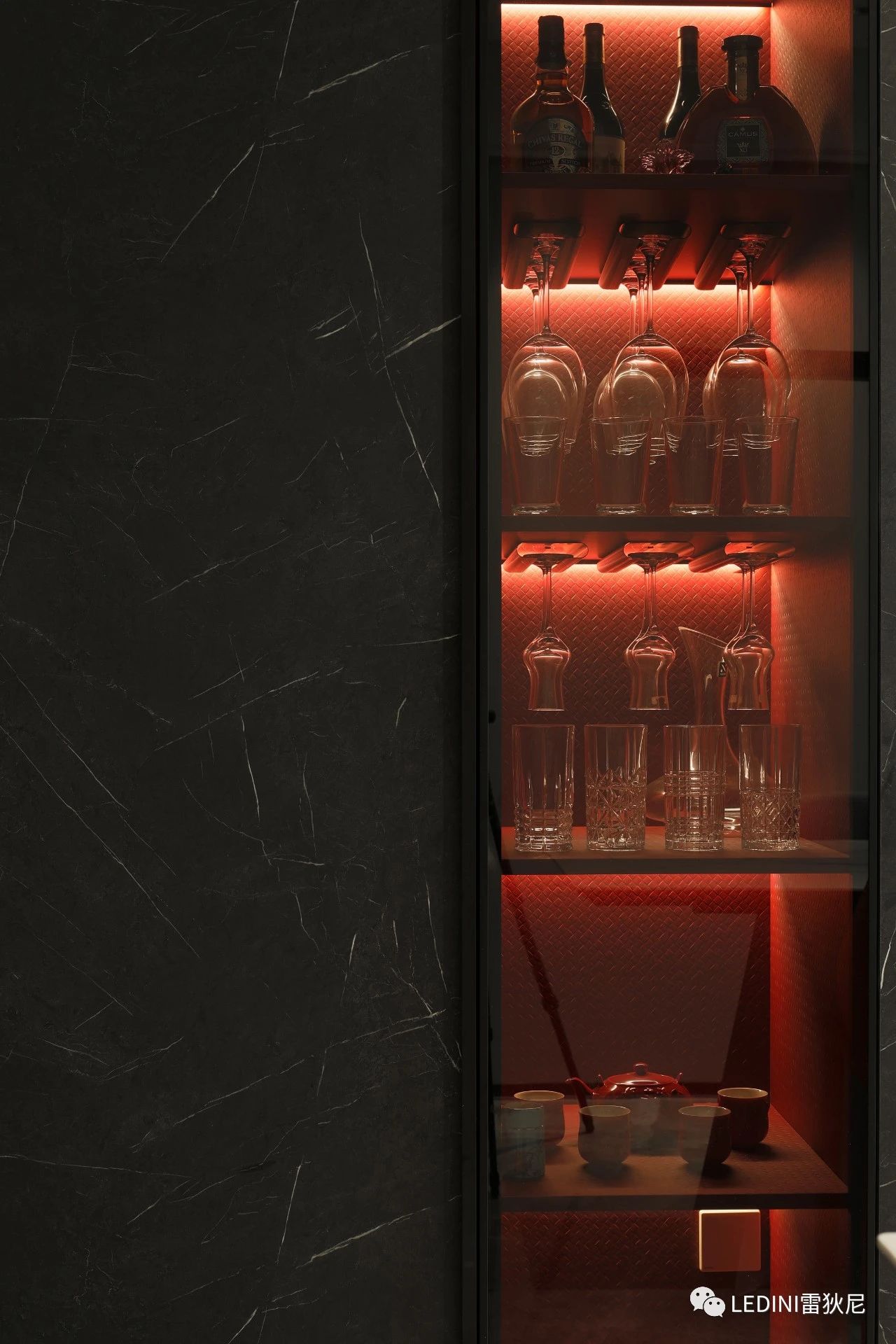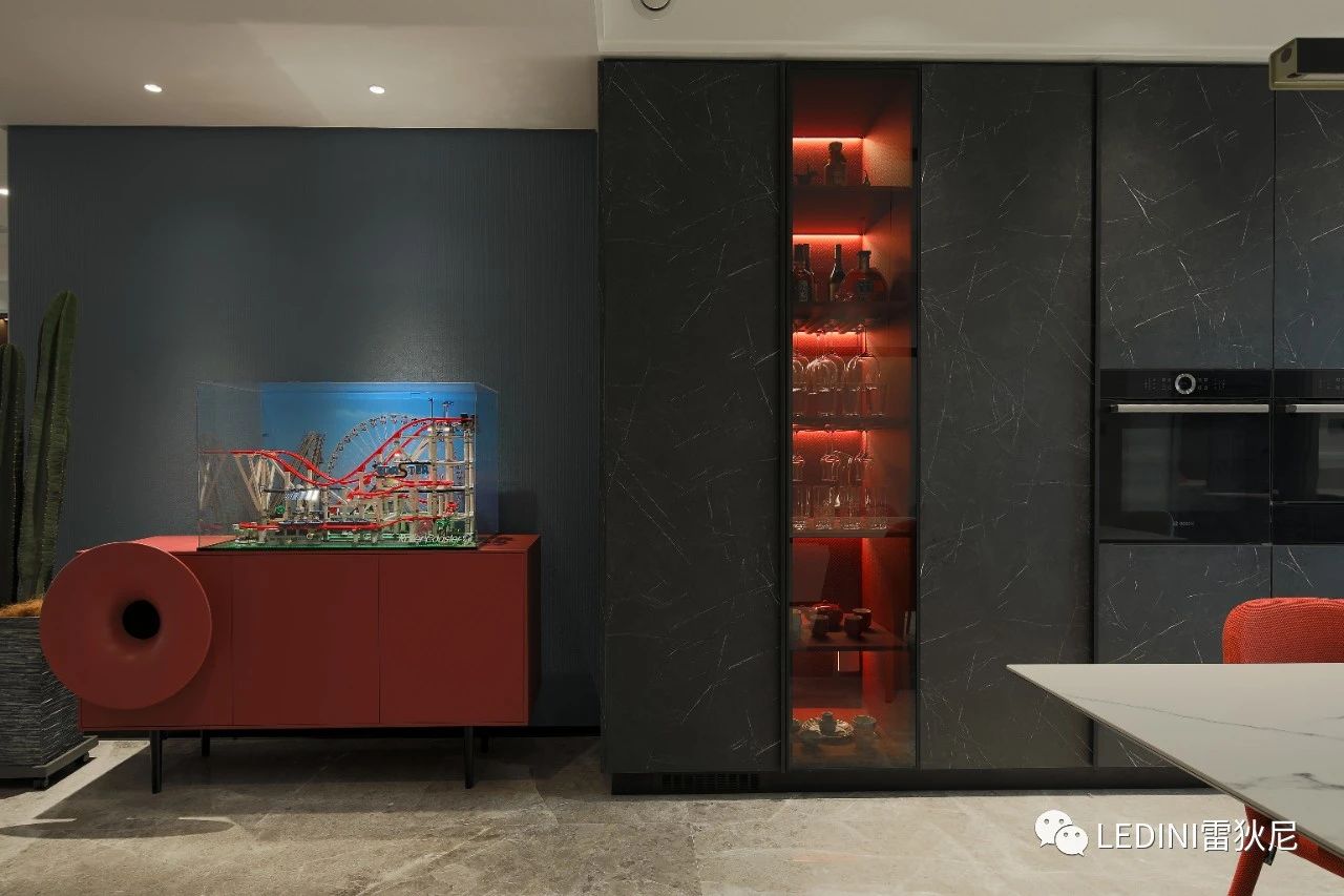 柜體采用了LEDINI進口免漆板FB35黑色馬賽克皮紋