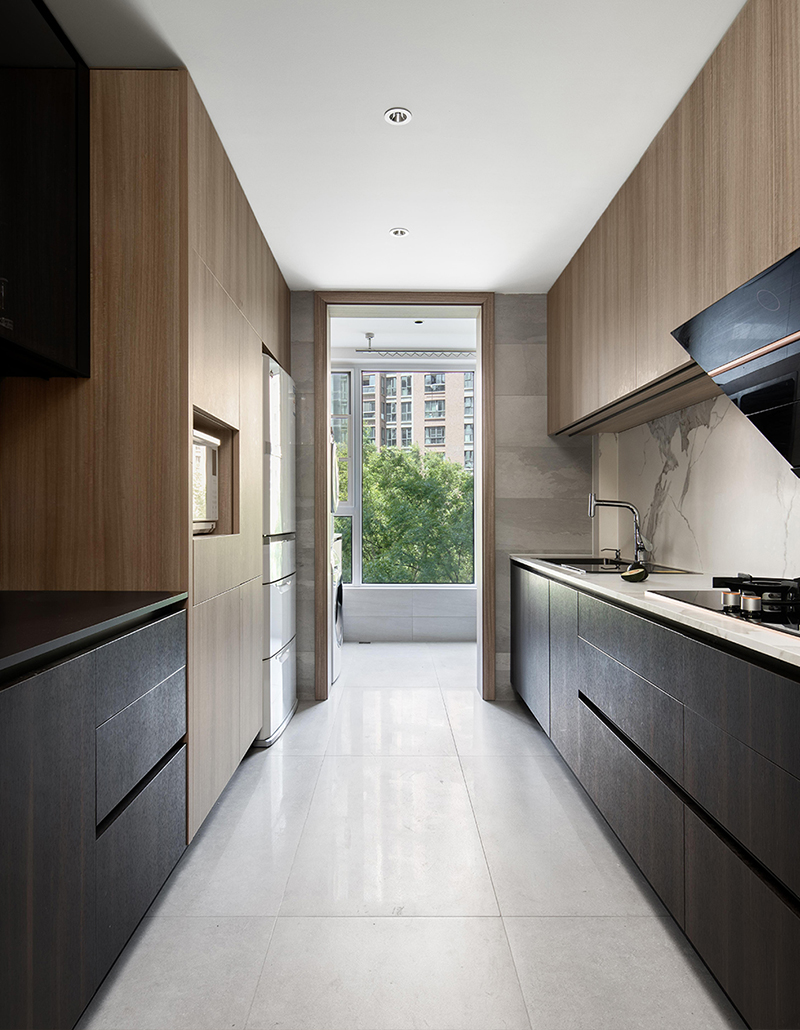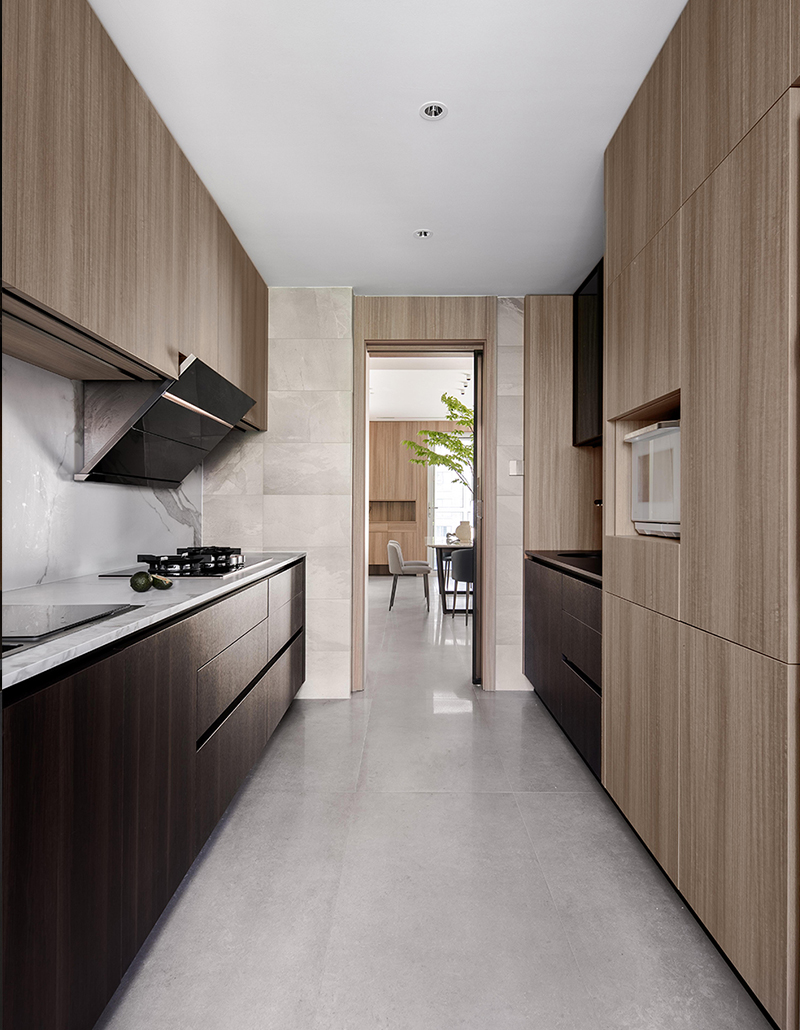 免拉手的工藝細節(jié)還原了櫥柜干凈統(tǒng)一的立面效果,